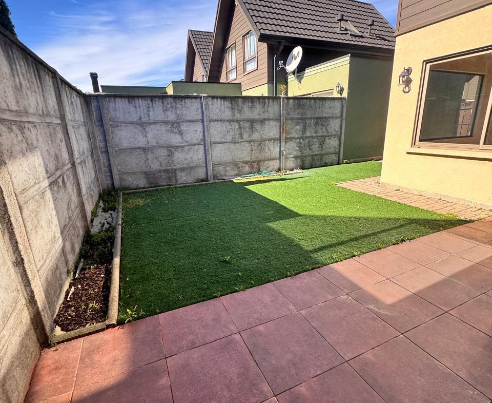 \n• Ante jardín y patio trasero con pasto sintético